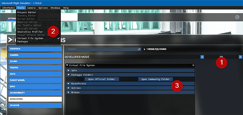 - Go to your General Settings in MSFS and activate Developer Mode.
