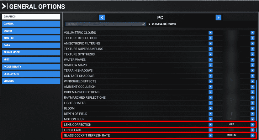 Set the Glass Cockpit Refresh Rate to Medium or Low to avoid unnecessary display calculations which might cause fps loss.