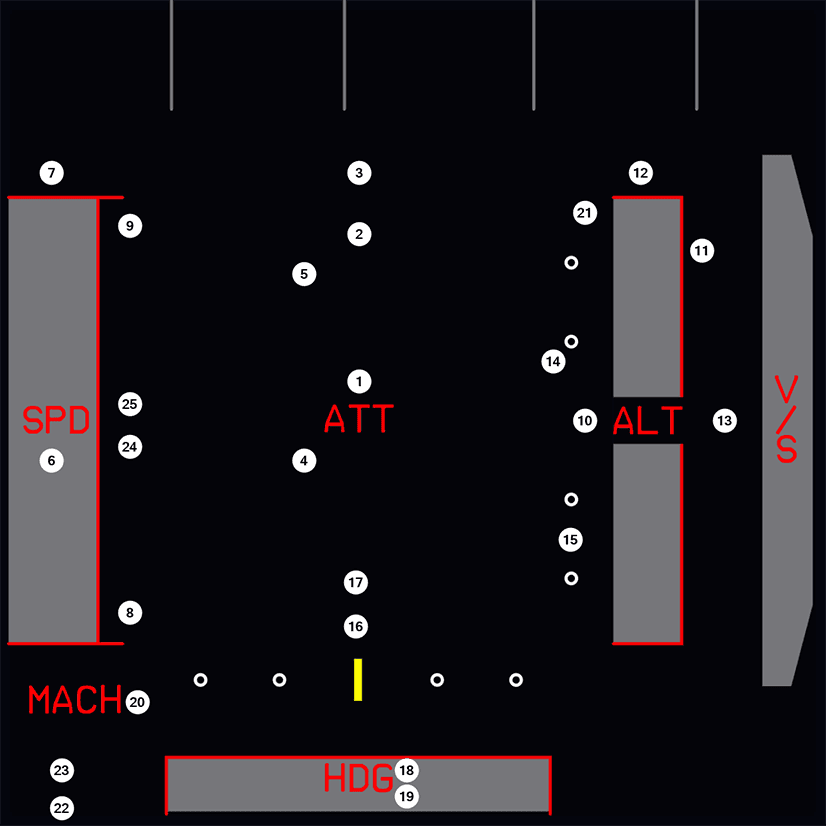 This is displayed in red. It appears if both of the FMGCs fail, or if both flight directors are disengaged and the FD pushbutton is on, and the attitude is valid.